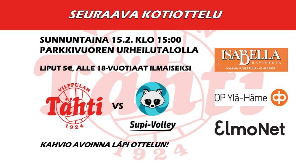 Tervetuloa pelaamaan kanssamme lentopalloa tai tukemaan seuratyötä muuten omalla panoksellasi. Pelataan Tähtien kanssa!